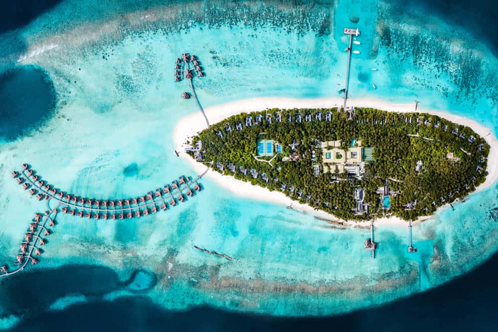- Medium island; ~100–120 villas (beach & overwater; pool villas). Spacious villa plots.